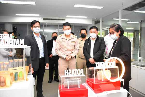 นายอดิทัต วะสีนนท์ รองอธิบดีกรมอุตสาหกรรมพื้นฐานและการเหมืองแร่ เปิดเผยภายหลังเป็นประธานในพิธีส่งมอบแบตเตอรี่โพแทสเซียมไอออนต้นแบบว่า กพร. ได้ดำเนินโครงการพัฒนาเทคโนโลยีการผลิตวัตถุดิบเพื่อรองรับการพัฒนาอุตสาหกรรมศักยภาพร่วมกับมหาวิทยาลัยขอนแก่น โดยเล็งเห็นความสำคัญของการเตรียมความพร้อมด้านวัตถุดิบเพื่อรองรับการพัฒนาอุตสาหกรรมศักยภาพ เนื่องจากเป็นปัจจัยการผลิตสำคัญที่ช่วยเพิ่มขีดความสามารถในการแข่งขันของประเทศ ซึ่งหนึ่งในกลุ่มเป้าหมายหลักคือ อุตสาหกรรมการผลิตแบตเตอรี่แห่งอนาคต